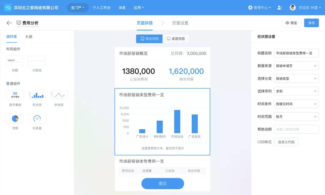 宋凯现场演示了如何通过拖拉组件,仅需几分钟即可完成“市场部如何搭建‘市场费用管理’来解决预算控制问题”的应用程序搭建过程。通过云之家零代码平台,让每个企业人心中都有一个自己的云之家!